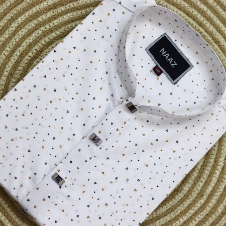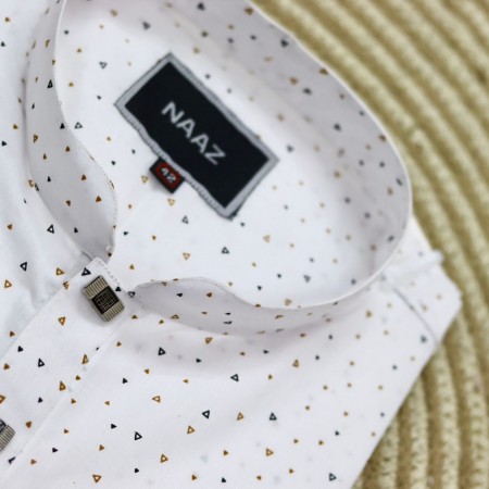 Trendy white cotton Panjabi with minimal triangle print – perfect for casual & festive wear.